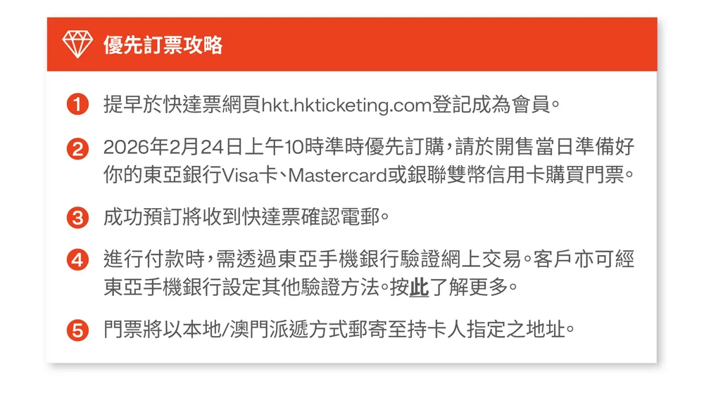 「亞洲第一天團」五月天近年不斷刷新演唱會規格標竿,其「5525 回到那一天」25 週年巡迴演唱會不僅橫掃 9 項國際舞台設計大獎,更憑藉極致的視聽美學成為全球樂壇焦點。這不僅是一場演唱會,更是五月天與香港歌迷「不見不散」的承諾。在全新的啟德舞台上,他們將重新演繹無數經典金曲,帶領樂迷從思念引路、回憶識途,赴一場獨特難忘的春日之約。