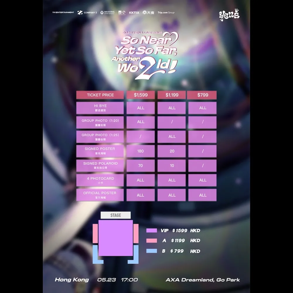 是次將是YENA首次以個人身份來港舉辦演唱會,對於本地粉絲而言極具紀念意義。有關演唱會的詳細資訊有待。