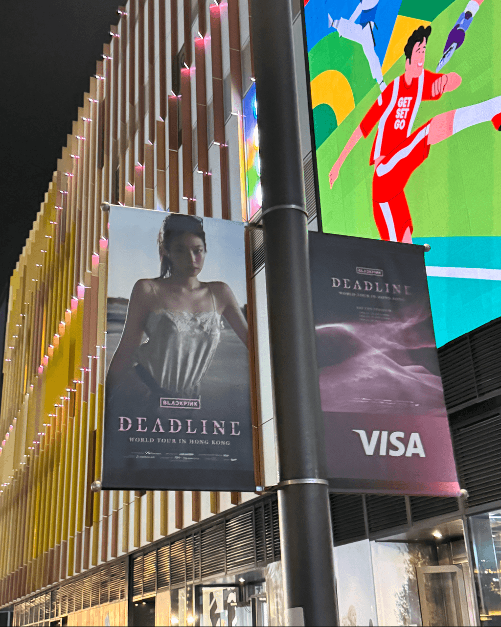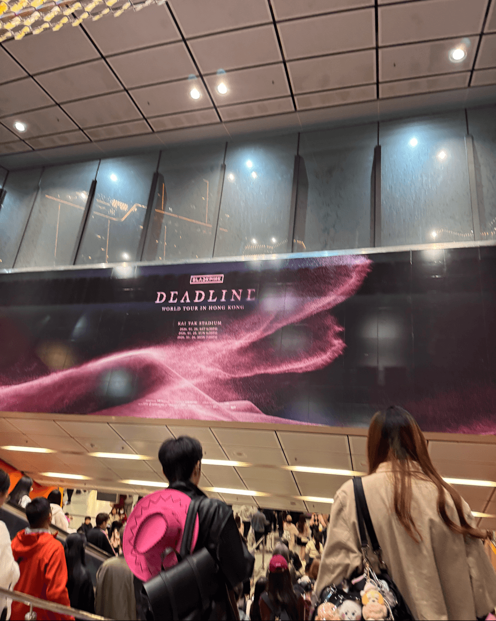 3. 整座啟德零售館2換上粉紅新裝,LED 巨型幕牆亮起<DEADLINE>粉紅燈光,而場內一直循環播放BLACKPINK的熱門金曲。建築物外牆亦分別遍佈了巨型BLACKPINK 海報