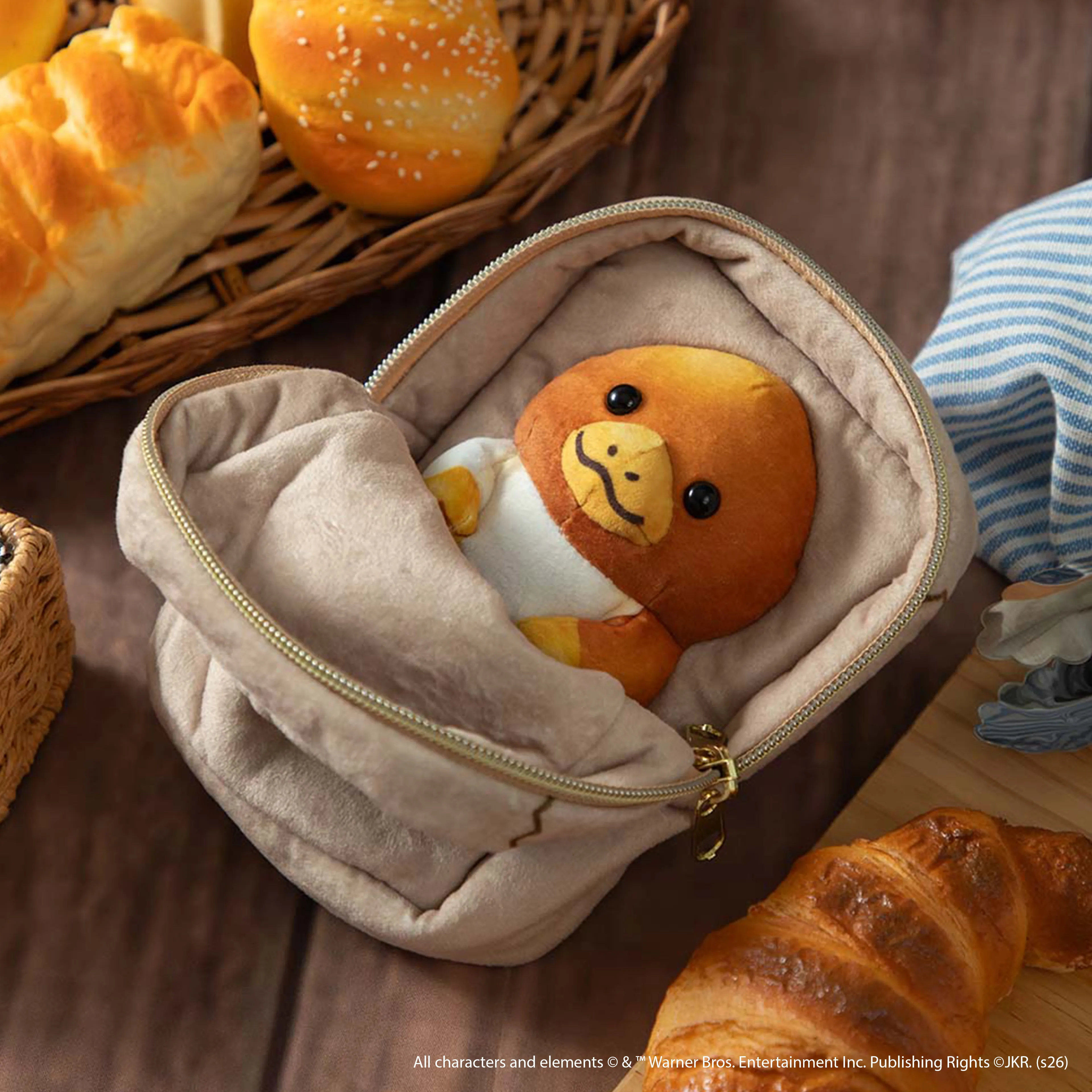 以怪獸電影系列為靈感的Kowalski烘焙店系列,推出多款可愛周邊。其中這款正面仿照烘焙店紙袋設計,翻轉即彈出超萌的Baby Niffler麵包公仔。
