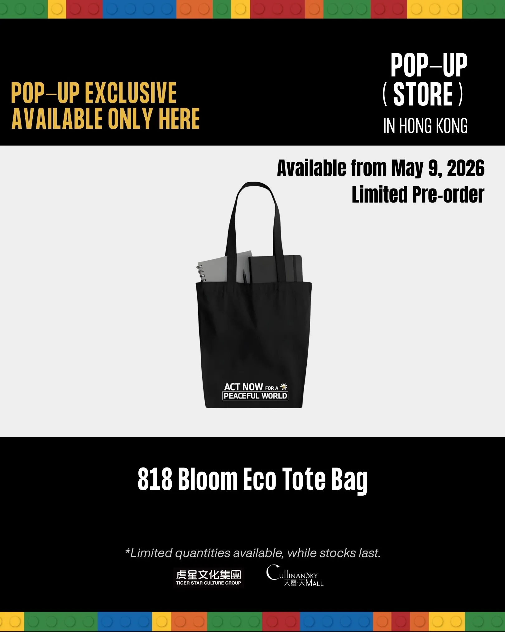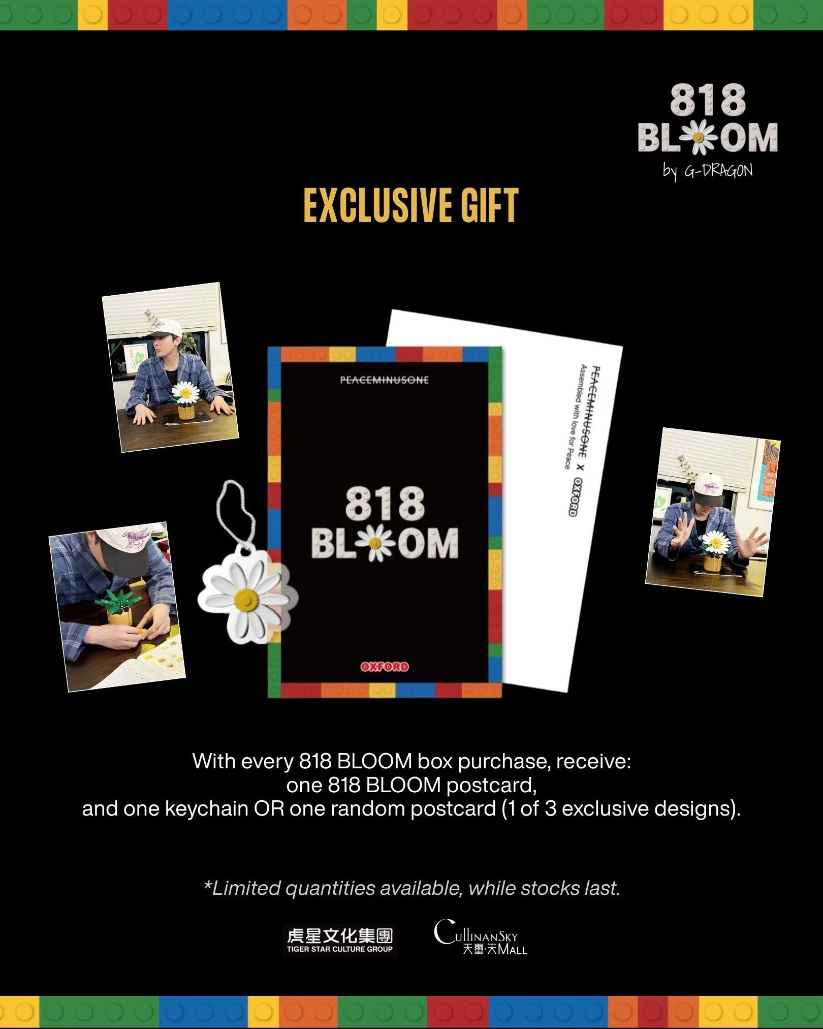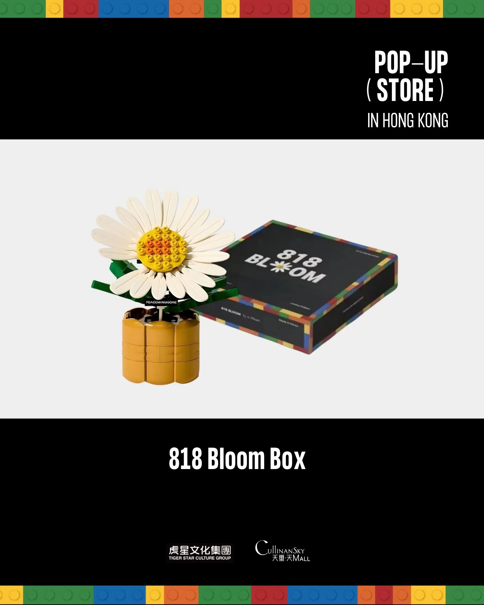 香港限定發售3,000盒「818 BLOOM」小雛菊積木禮盒,購買一盒即有機會獲得彩色邊框「818 BLOOM」限定明信片及隨機贈品(隨機明信片一張或小雛菊飾物一個)。