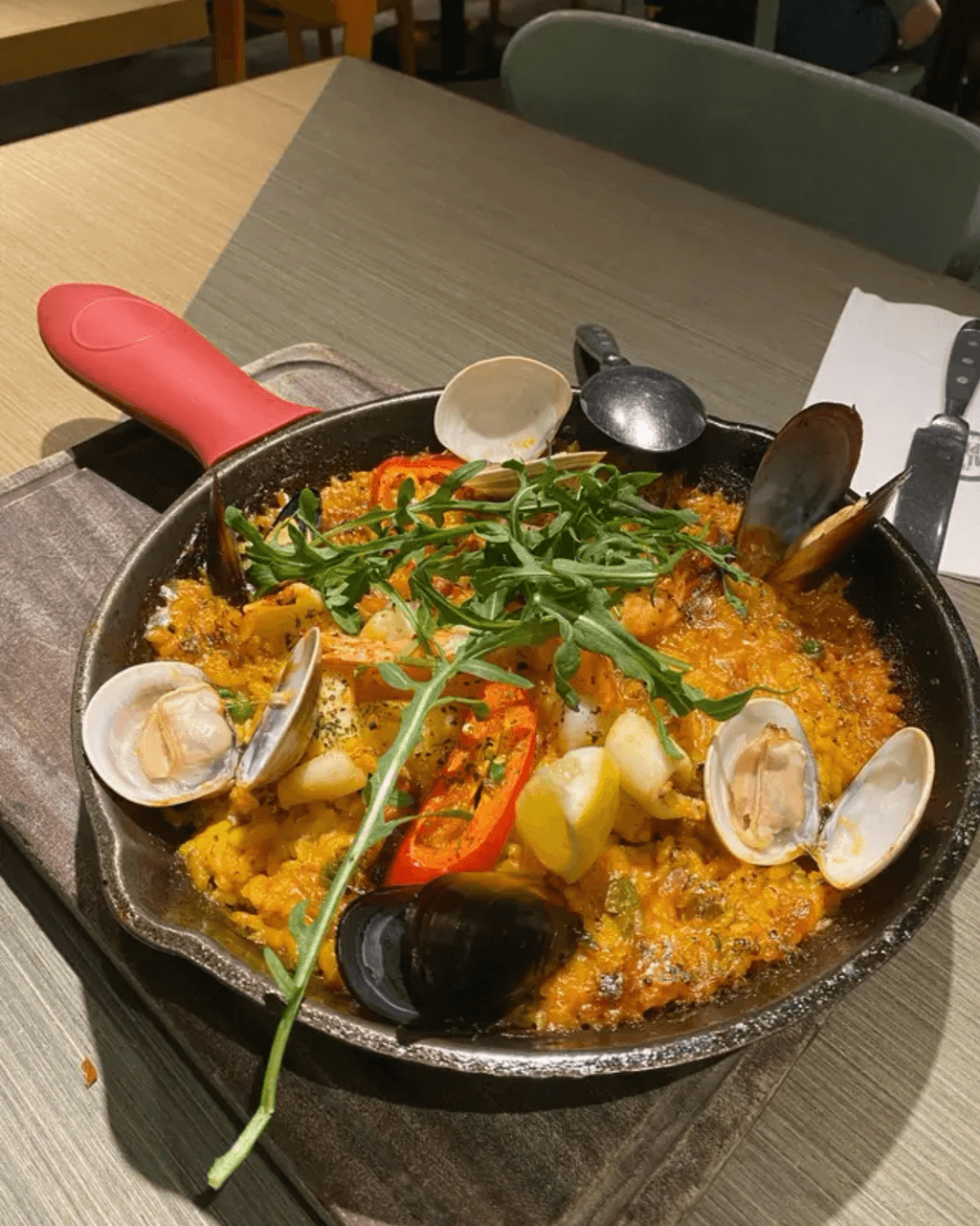 招牌菜「德國鹹豬手」是每枱必點的皇牌菜式,豬手預先去骨切件,外皮烤得金黃香脆,肉質軟嫩入味,鹹度適中,配上酸菜及芥末籽忌廉汁,可中和油膩感。「西班牙海鮮飯」同樣是人氣之選,鐵鍋上枱熱辣辣,配料豐富,包括蝦、大蜆、青口、魷魚、辣肉腸及煙雞肉,飯粒吸滿海鮮湯汁,份量十足。「慢煮脆皮豬腩」外皮脆卜卜,肉質軟腍多汁,配香辣醋汁醒胃惹味。小食方面,「小食分享拼盤」集齊蘇格蘭雞蛋、豬皮脆片、脆豬肋骨、迷你牛肉漢堡、蟹餅及魷魚圈等,適合多人分享。甜品必試「瘋狂!香蕉雪糕新地」,內有香蕉、M&M朱古力、雪糕、窩夫及棉花糖,層次豐富。