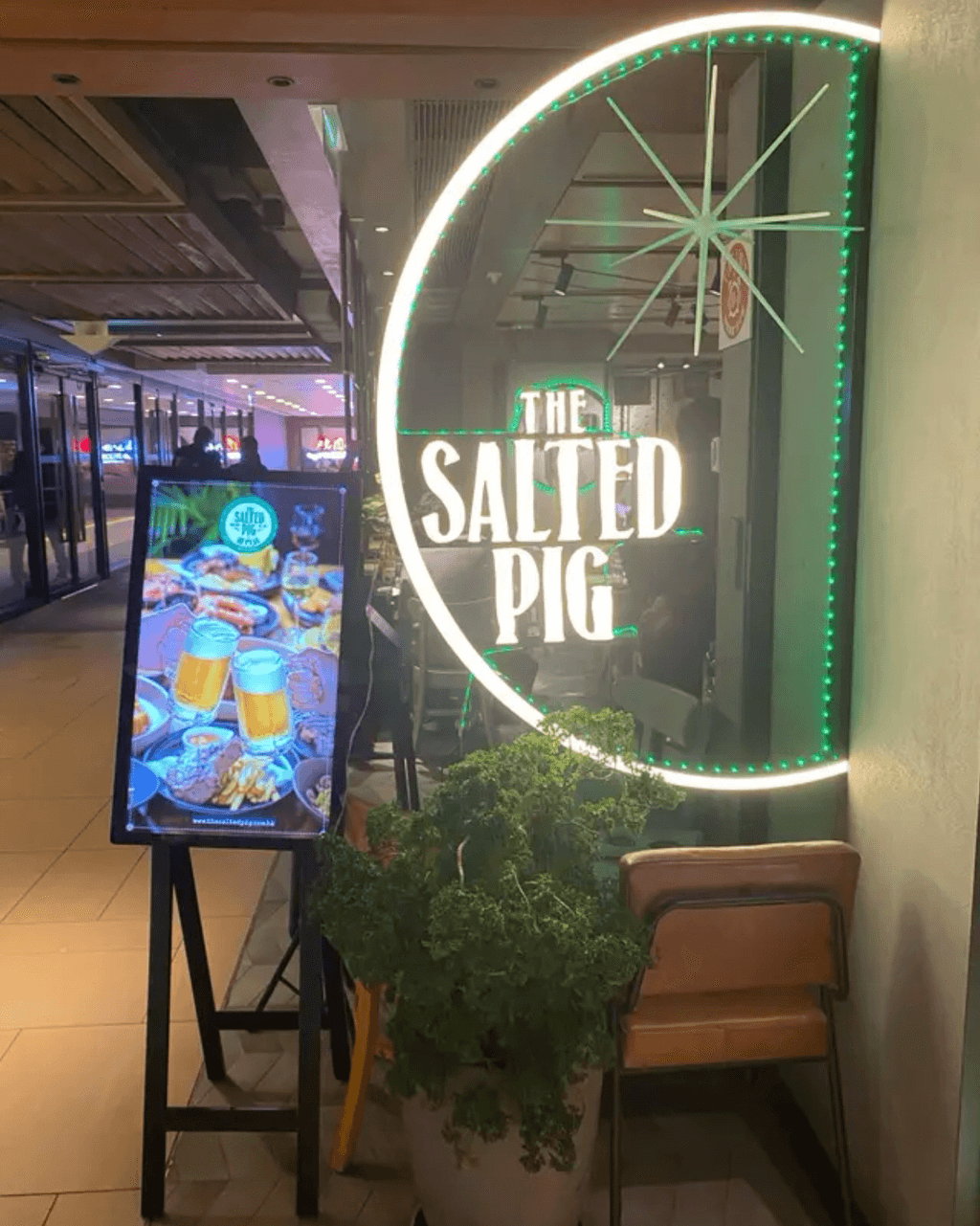 The Salted Pig 位於沙田新城市廣場一期7樓702號舖,是一間以豬肉為主題的西式餐廳。餐廳名字「豬門店」充滿玩味,裝潢走傳統英式農舍風格,牆上掛滿可愛的豬仔裝飾,環境寬敞舒適,適合與朋友或家人聚餐。餐廳堅持選用豬隻最優質的部位,配合時令食材入饌,同時亦提供雞、牛、羊及海鮮選擇。
