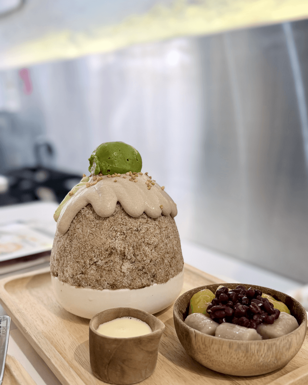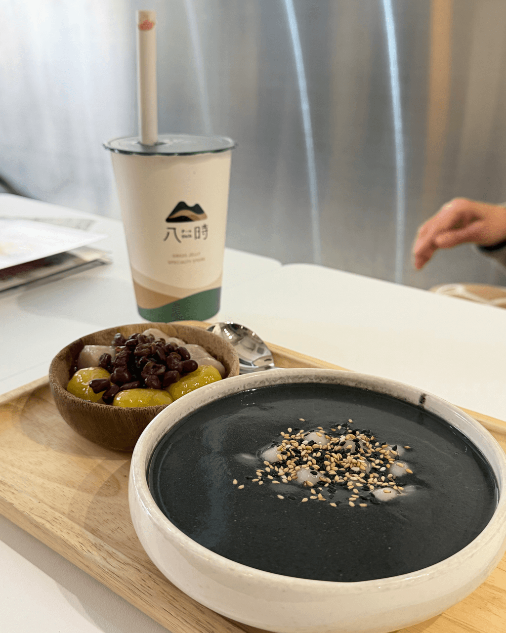 香港的台中人氣甜品店「八時神仙草」,主打仙草甜品及茶飲。店家會先將嫩仙草製成冰磚,再刨成牽絲又入口即溶的雪花冰,味道清甜,底層還放有仙草凍。